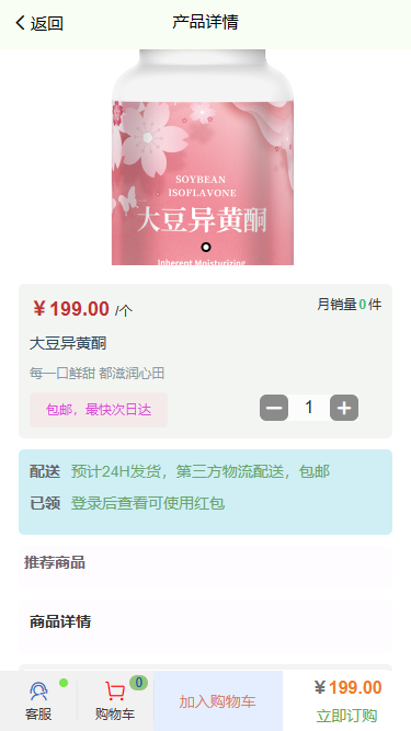 产品详情:产品列表中的产品对应商品详情界面,有关信息即可展示出来;