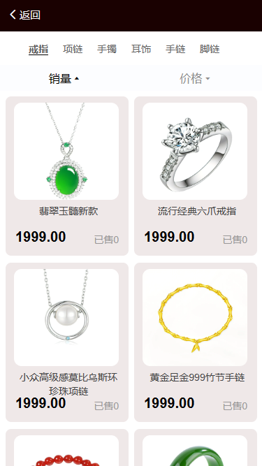 全部商品:图片及文字描述把各种服饰根据品类以列表的形式分区展示;