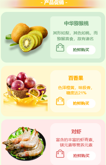 首页:展示店铺特色农产品样式;