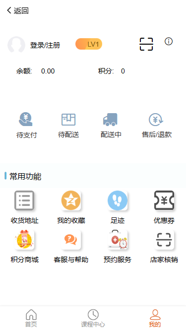 课程中心:把各种产品根据品类以列表的形式分区展示;